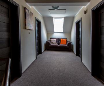 Spoločenská miestnosť s krbom, knižnicou a smart TV...